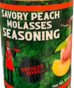 Brisket Boss's innovative Savory Peach Molasses Spice & Rub pairs well with beef, pork, chicken, or seafood. An indispensable seasoning for every kitchen.